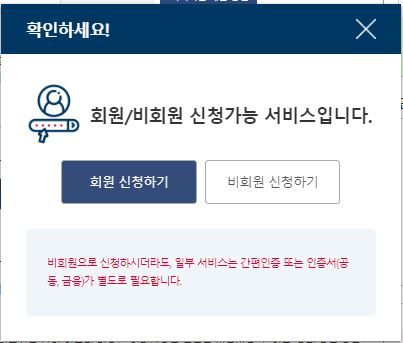 다. 회원가입이 되어 있다면 '회원 신청하기'를, 회원가입이 되어 있지 않다면 '비회원 신청하기'를 누릅니다.