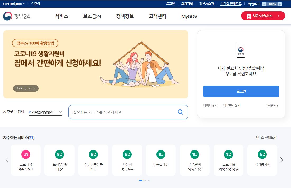 생활하다 보면 직장이나 금융기관 등에서 가족관계증명서를 요구하는 경우를 많이 접하게 되죠. 가족관계증명서를 발급받으려면 주민센터를 가야 하는 데 귀찮고 시간이 많이 듭니다. 하지만