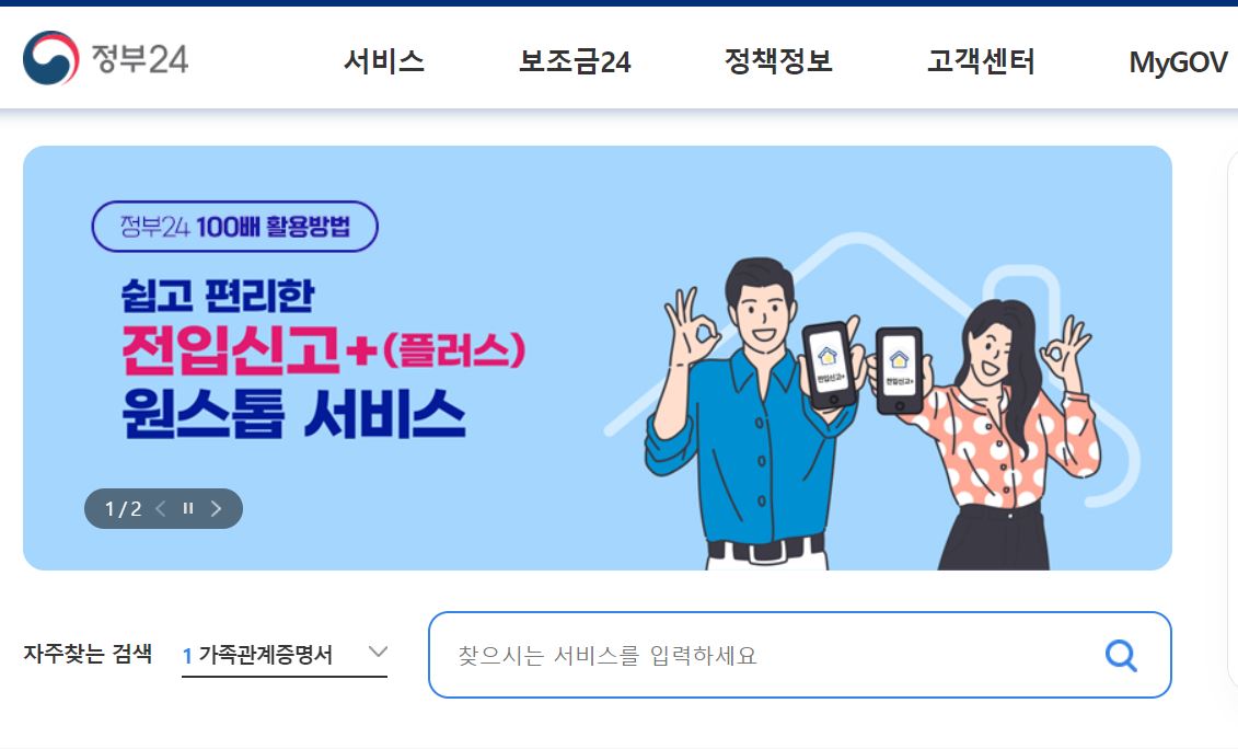 1. 정부24(https://gov.kr) 접속하여 로그인 누르기